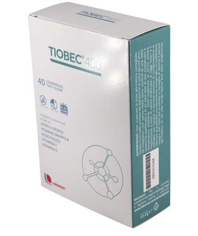 Integratore di acido alfa-lipoico, vitamine del gruppo B, vitamina E e vitamina C, utile in caso di aumentato fabbisogno di queste sostanze. Le vitamine C ed E favoriscono la protezione delle cellule dallo stress ossidativo, mentre le vitamine B1, B2, B6 e B12 contribuiscono al normale funzionamento del sistema nervoso. L'esclusiva tecnica di produzione della compressa di Tiobec 400 garantisce il rilascio controllato nel tempo dell'acido alfa- lipoico.