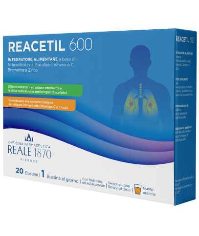 Integratore alimentare a base di N-acetilcisteina, vitamina C, bromelina, eucalipto e zinco indicato nei casi di ridotto apporto con la dieta o di aumentato fabbisogno di tali elementi. L’eucalipto svolge un effetto balsamico ed ha un’azione emolliente e lenitiva sulla mucosa orofaringea. Lo zinco e la vitamina C contribuiscono alla normale funzione del sistema immunitario ed alla protezione delle cellule dallo stress ossidativo.